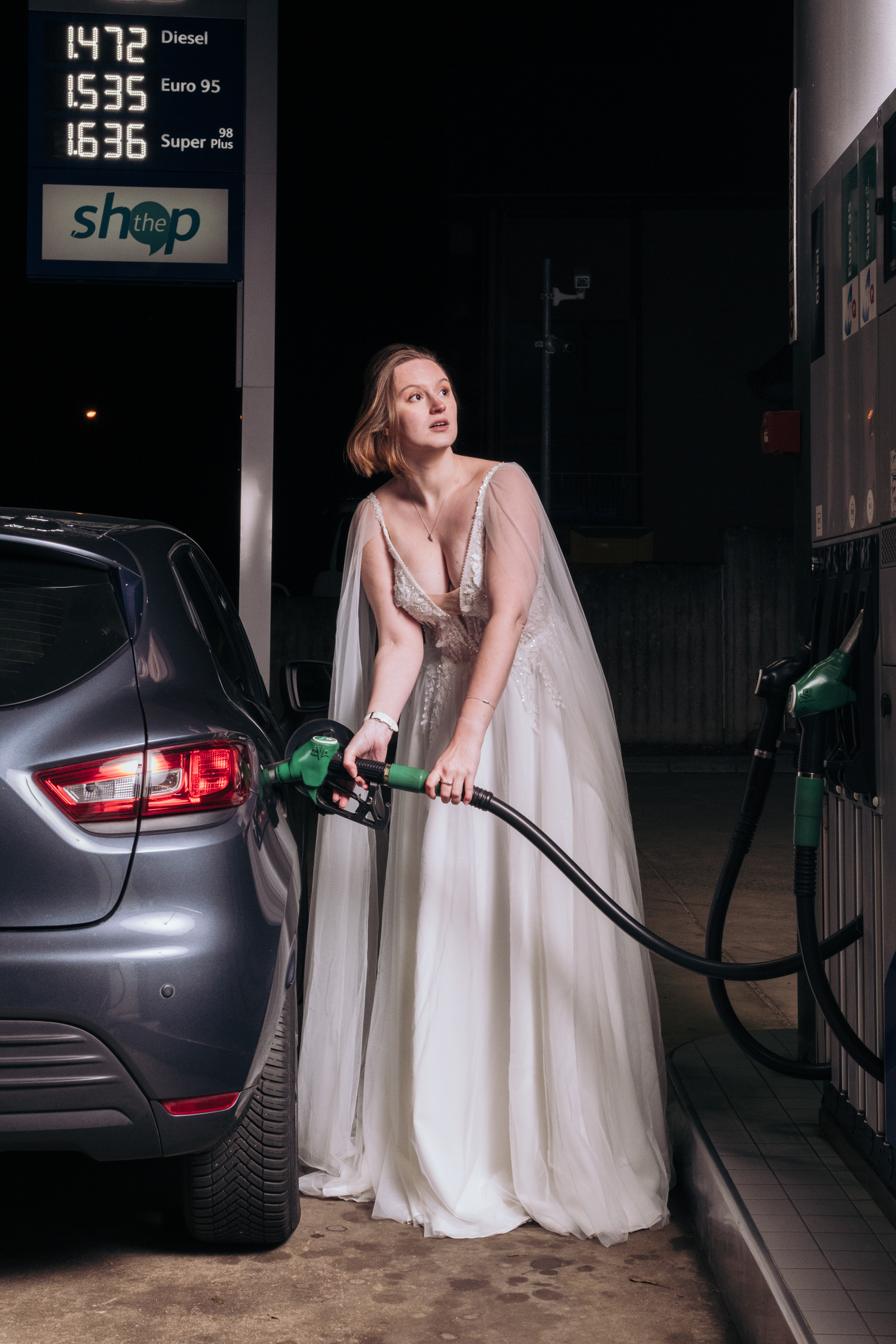 Panne des sens 2°C sous les première neige du Luxembourg, vous pouvez admirer la technique, sans une seule goutte sur la robe ! Modèle : Lorna ADresse : Station Luxembourg CONCEPT : KEEP THE DRESS